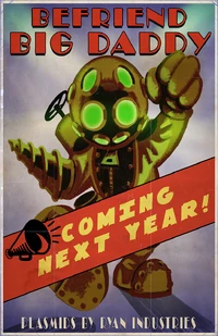 A poster advertising the Hypnotize Big Daddy Plasmid can be seen in the Bathyspheres DeLuxe Information kiosk. When approached, Elizabeth will curiously read the title out loud, while Booker comments on the inconvenient release date, considering the Bouncer roaming freely on their floor. However, the drinkable Possession Plasmid has a similar effect on it, albeit not as long lasting.